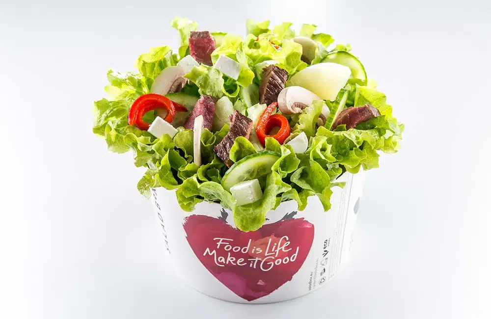 saláta, uborka, paradicsom, feta, olajbogyó, lilahagyma, válaszható öntetKosárba teszem 3590 Ft -