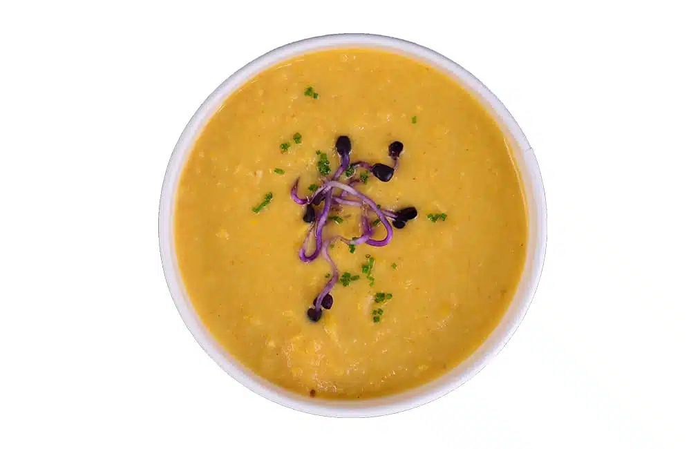 répa, zeller, lilahagyma, burgonya, kukorica, növényi tejszín, só, bors